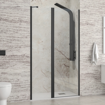 Καμπίνα από τοίχο σε τοίχο με διάφανο κρύσταλλο PANEX 400 ALTO Black KARAG 125x200cm