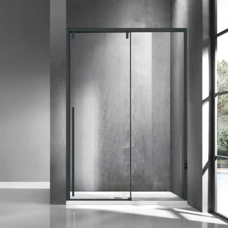 Καμπίνα από τοίχο σε τοίχο με διάφανο κρύσταλλο SANTORINI 400 Black KARAG 140x200cm