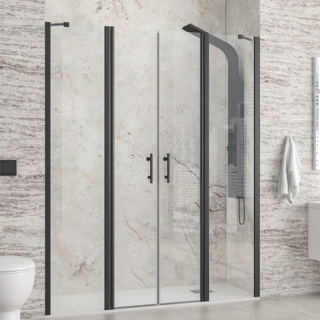 Καμπίνα από τοίχο σε τοίχο με διάφανο κρύσταλλο PANEX 700 Black KARAG 145x200cm