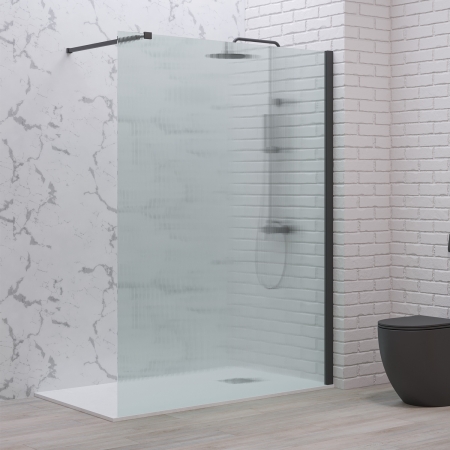 Σταθερό διαχωριστικό ντουζιέρας με flute κρύσταλλο WALKIN 1 Black KARAG 80x200cm