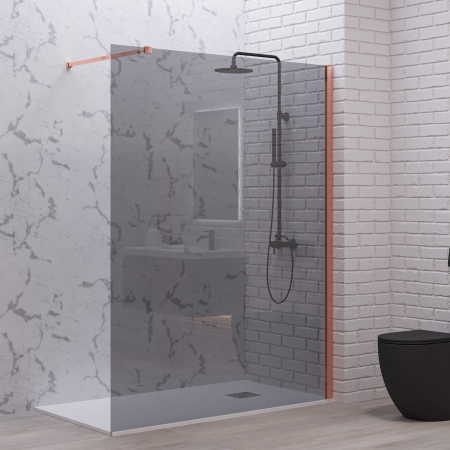 Σταθερό διαχωριστικό ντουζιέρας με fume κρύσταλλο WALKIN 1 Rose Gold KARAG 80x200cm