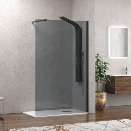 Σταθερό διαχωριστικό ντουζιέρας με fume κρύσταλλο WALKIN 1 Black KARAG 90x200cm