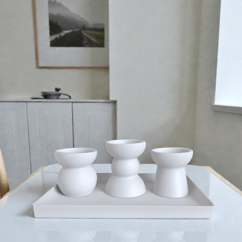 Αυτό το σετ αποτελείται από τρία αριστοτεχνικά κατασκευασμένα διακοσμητικά χειροποίητα από πορσελάνη δοχεία ,και χαρακτηρίζονται από τα κλιμακωτά μεγέθη προσφέροντας οπτική αρμονία όταν τοποθετούνται μαζί.