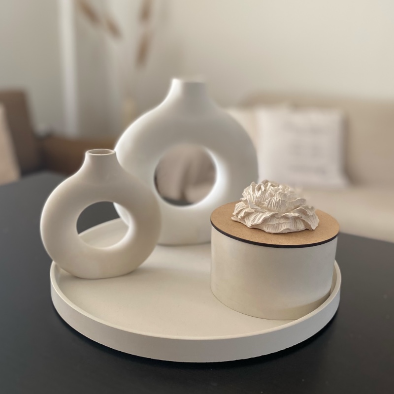 Η στρογγυλή του γραμμή και η φυσική υφή του τον καθιστούν ιδανικό ως διακοσμητικό στοιχείο για να τοποθετήσετε μέσα διάφορα αντικείμενα ή ένα κερί ή αρωματικό χώρου , ενώ το λευκό χρώμα συνδυάζεται με κάθε είδους απόχρωση και ξύλινη επιφάνεια.