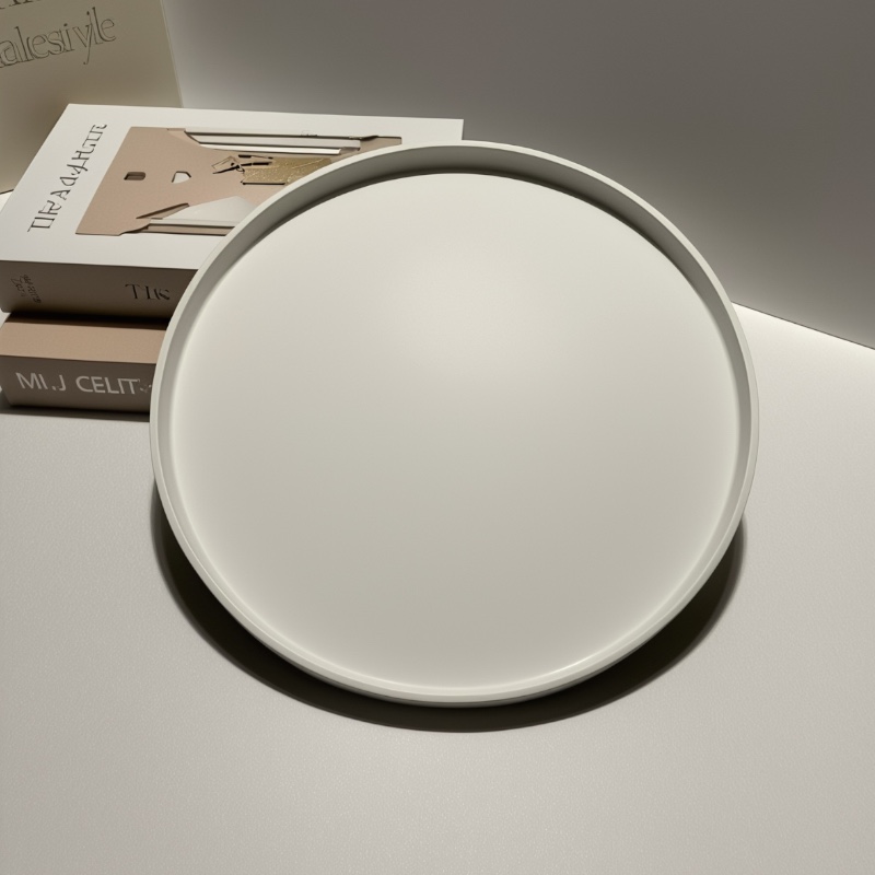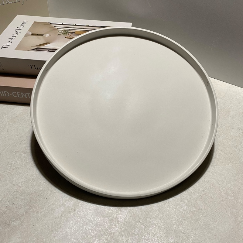 Διακοσμητικός δίσκος χειροποίητος σε μπέζ χρώμα κυκλικός με γείσο σχεδιασμένος με έμφαση στην απλότητα και την ισορροπία.