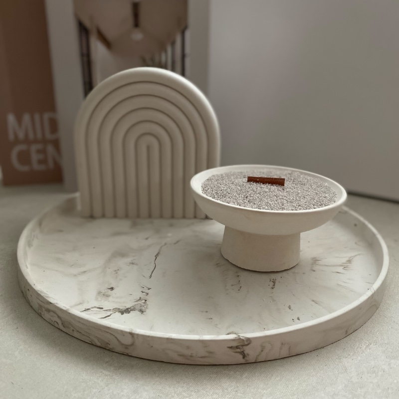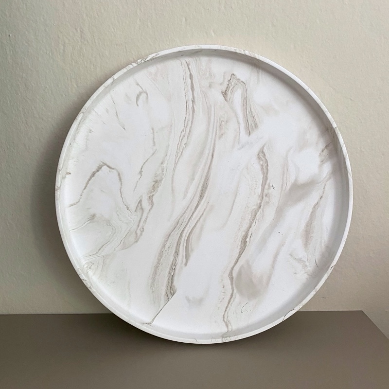 Διακοσμητικός χειροποίητος δίσκος στρογγυλός με γείσο με εφέ μαρμάρου .