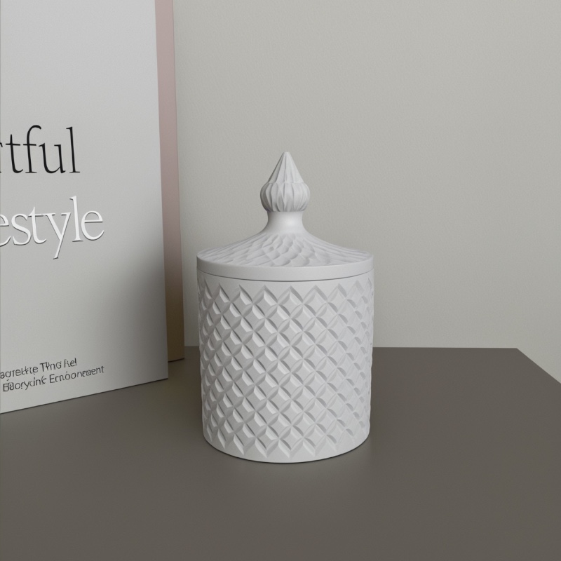Διακοσμητικό Βάζο με καπάκι χειροποίητο που αποτελεί μια γεωμετρική αρμονία. Το ανάγλυφο μοτίβο με τους ρόμβους δημιουργεί μια τρισδιάστατη υφή που θυμίζει σύγχρονη αρχιτεκτονική επιφάνεια , ενώ το καθαρό λευκό φινίρισμα αναδεικνύει κάθε γωνία του σχεδίου, καθιστώντας το την ιδανική επιλογή για όσους αναζητούν την τελειότητα στις γραμμές, ενώ μπορεί να χρησιμοποιηθεί και ως αποθηκευτικός χώρος για μικροαντικείμενα.