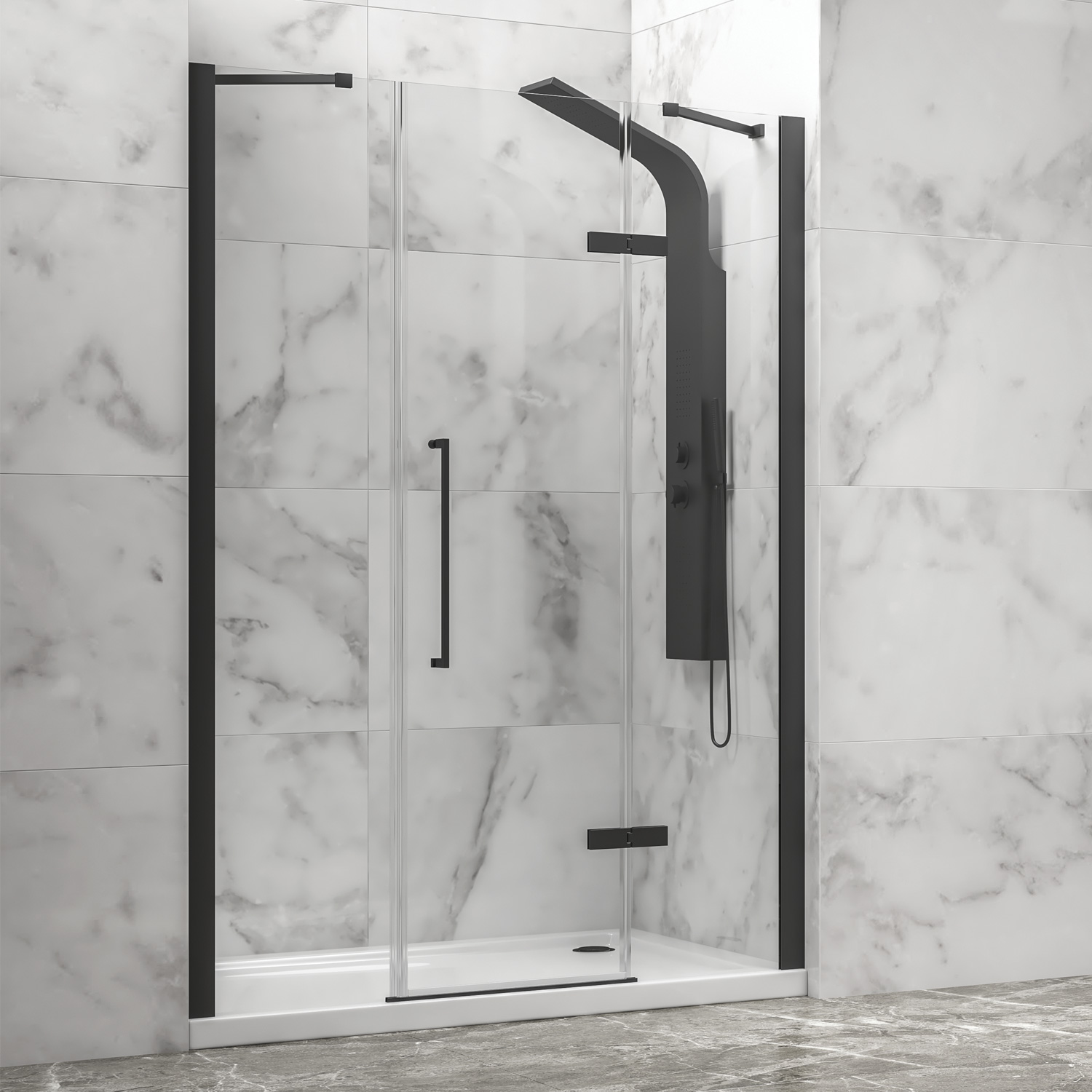 Link to: Καμπίνα από τοίχο σε τοίχο με διάφανο κρύσταλλο TINOS 600 Black KARAG 165x200cm
