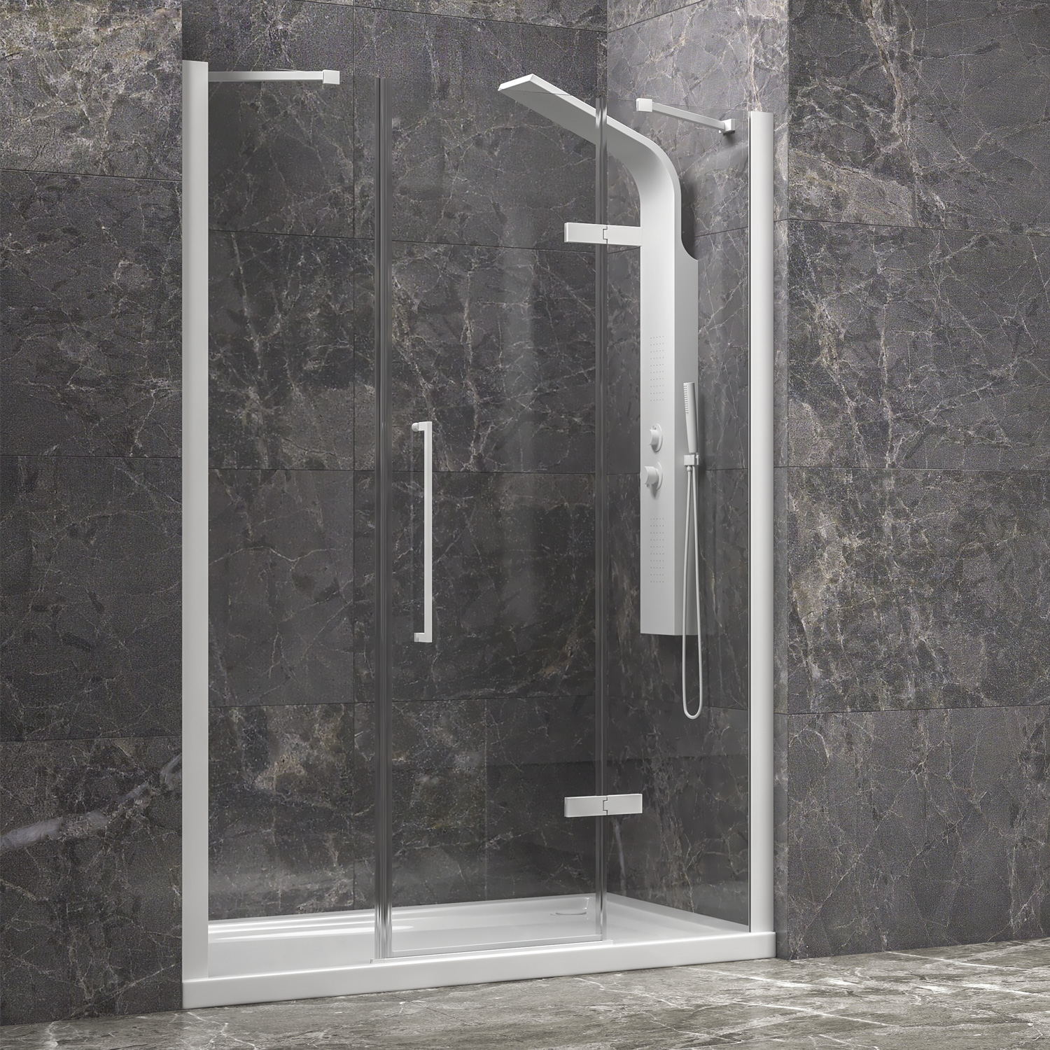 Καμπίνα από τοίχο σε τοίχο με διάφανο κρύσταλλο TINOS 600 White KARAG 165x200cm