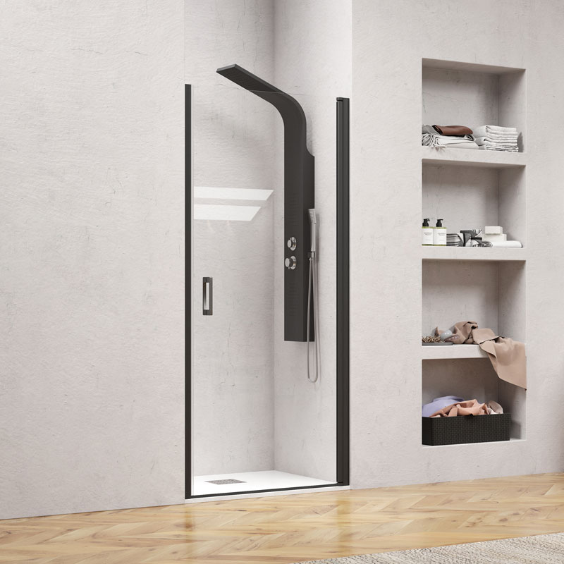 Καμπίνα από τοίχο σε τοίχο με διάφανο κρύσταλλο NERO PIVOT PORTA Black KARAG 90x200cm