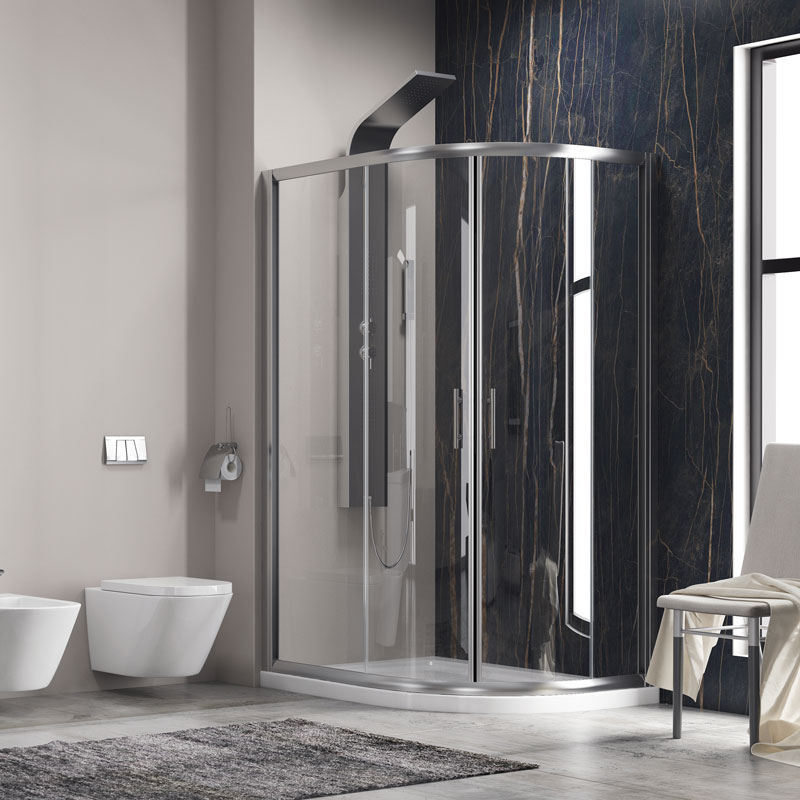 Καμπίνα ασύμμετρη ημικυκλική με διάφανο κρύσταλλο FLORA 650 Cromo KARAG 90x120x190cm