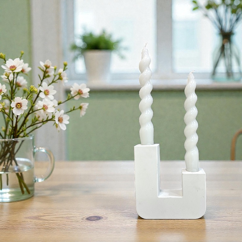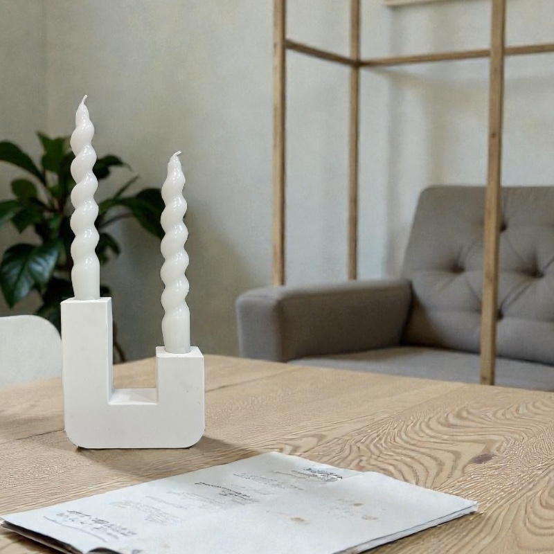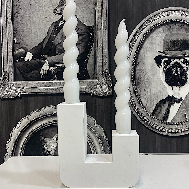 Ένα κομψό διακοσμητικό κηροπήγιο σε λευκό χρώμα που συνδυάζει τέχνη και λειτουργικότητα χειροποίητο από πορσελάνη λευκό σε κάθετο ασύμμετρο σχήμα για τοποθέτηση κεριών .