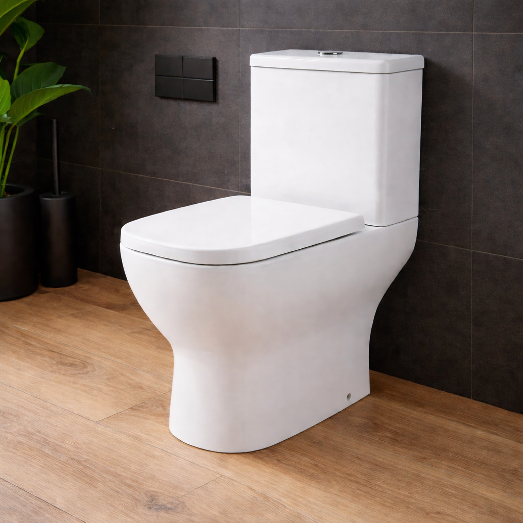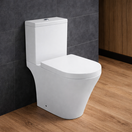 - Πισωστόμια λεκάνη τύπου rimless (η αφαίρεση του εσωτερικού χείλους προσφέρει οπτική συνέχεια στην επιφάνεια της λεκάνης και σε συνδυασμό με το σύστημα περιδίνησης νερού προσφέρει καλύτερο και ευκολότερο καθαρισμό)