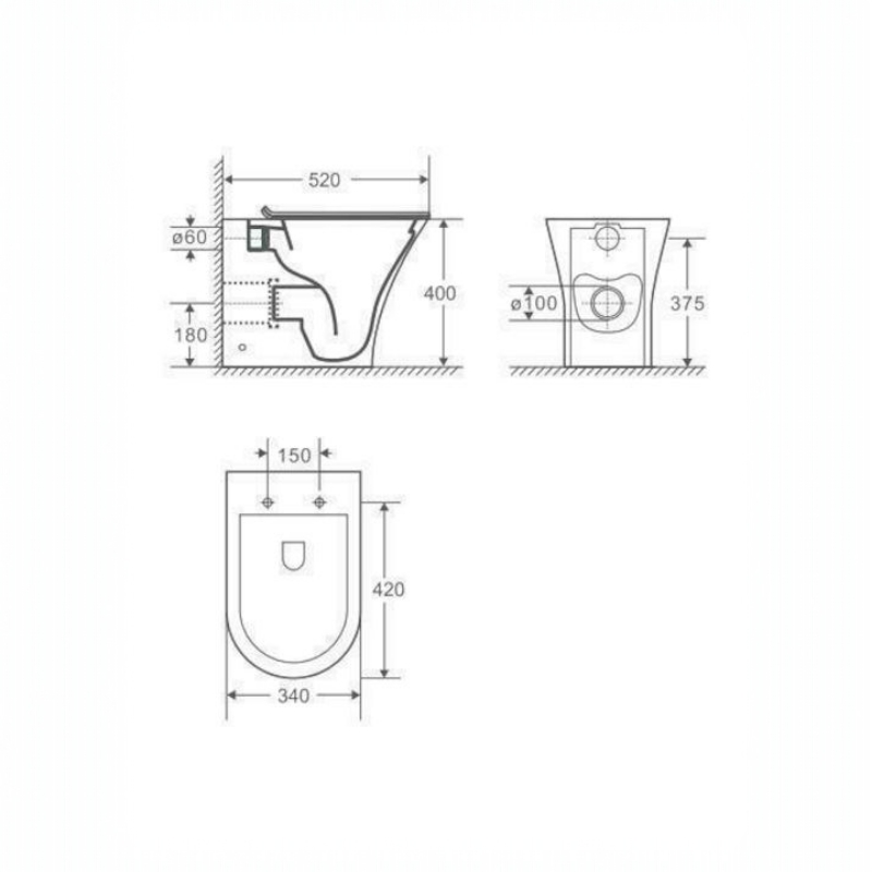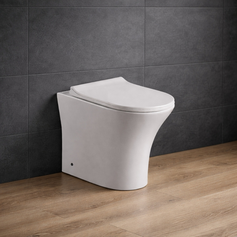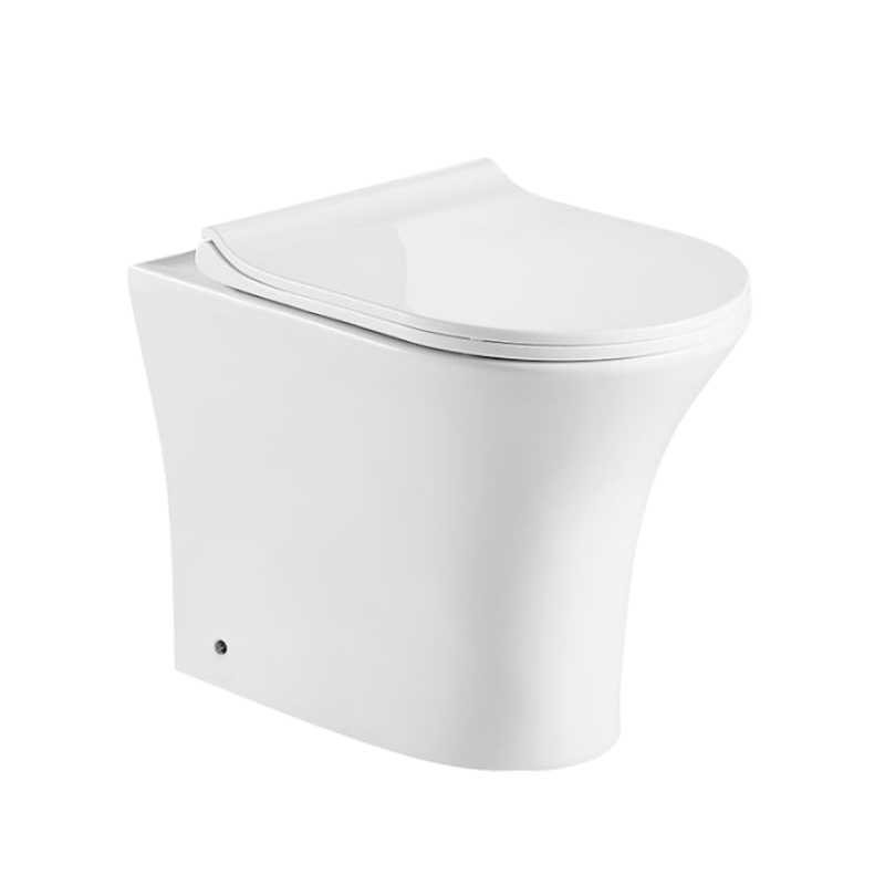 - Πισωστόμια λεκάνη τύπου rimless (η αφαίρεση του εσωτερικού χείλους προσφέρει οπτική συνέχεια στην επιφάνεια της λεκάνης και σε συνδυασμό με το σύστημα περιδίνησης νερού προσφέρει καλύτερο και ευκολότερο καθαρισμό)