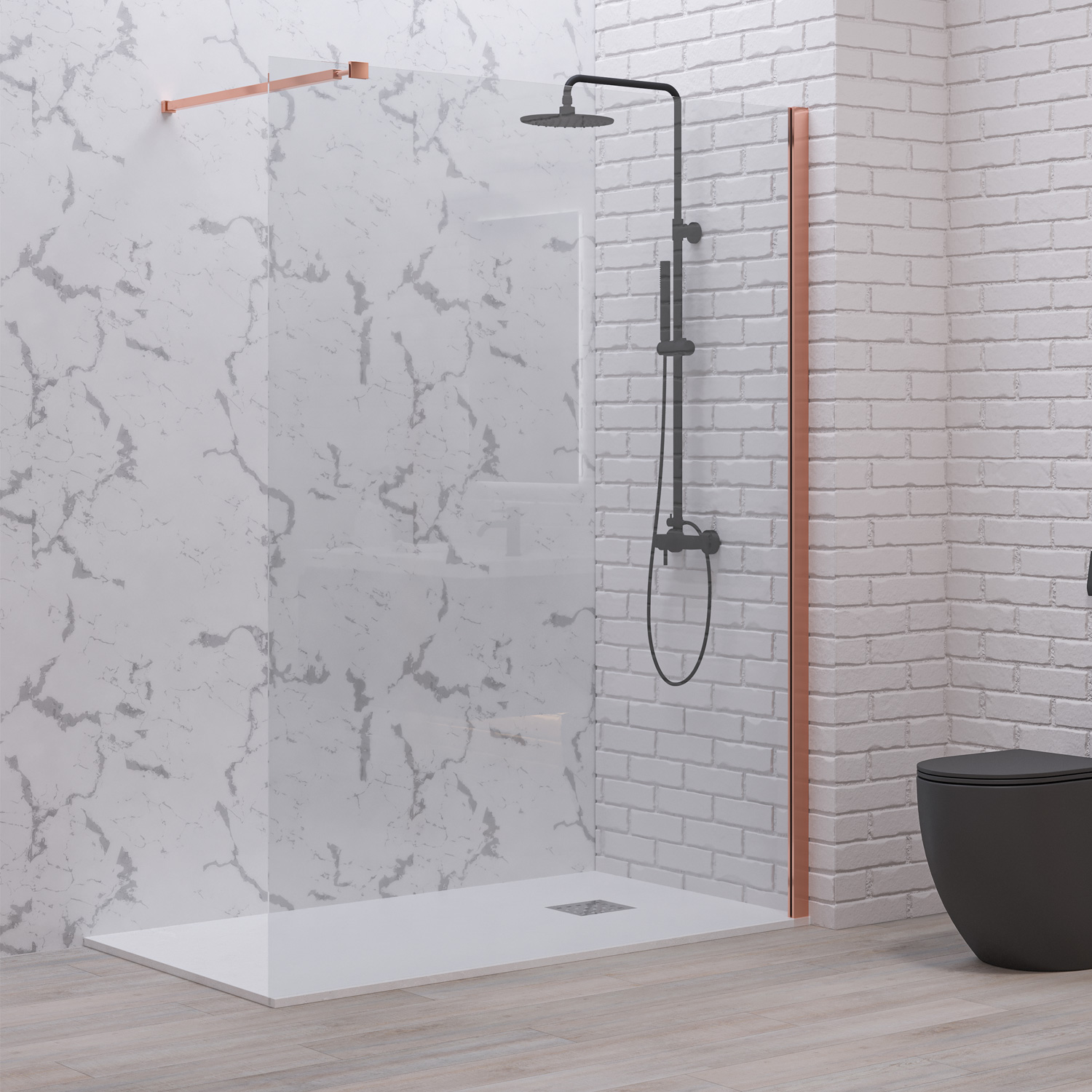 Σταθερό διαχωριστικό ντουζιέρας με διάφανο κρύσταλλο WALKIN 1 Rose Gold KARAG 90x200cm