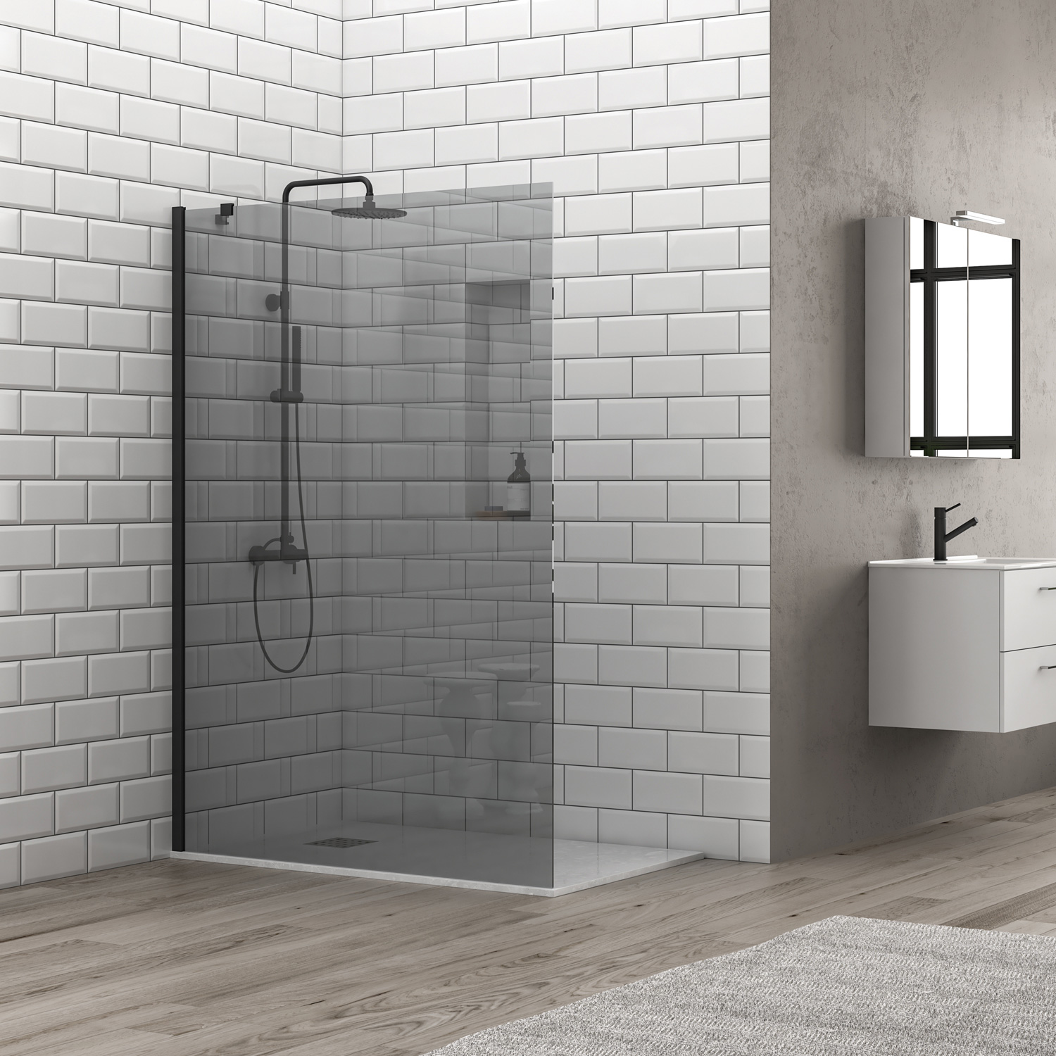 Σταθερό διαχωριστικό ντουζιέρας με fume κρύσταλλο S 28F ALTO Black KARAG 65x200cm ποσότητα