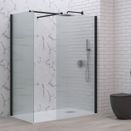 Σταθερά διαχωριστικά ντουζιέρας με flute κρύσταλλο WALKIN 2 Black KARAG 140x200cm
