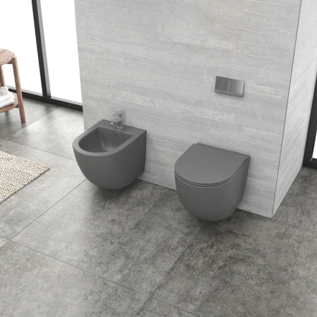 Λεκάνη αναρτώμενη rimless με κάλυμμα γκρι ματ MILOS LT 046E KARAG